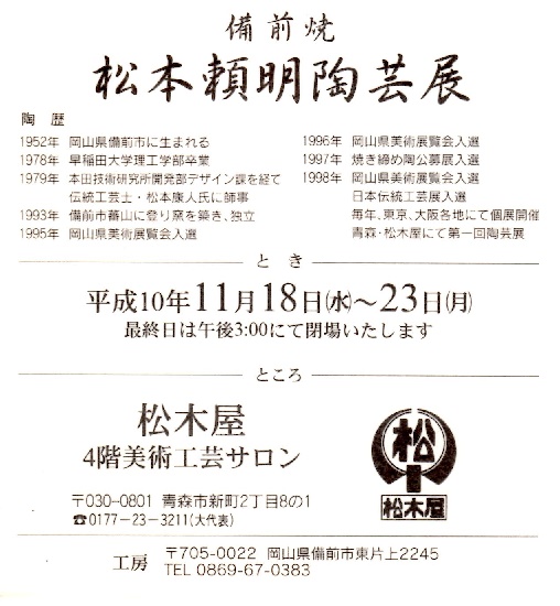 催事名 : 備前焼 松本頼明 陶芸展