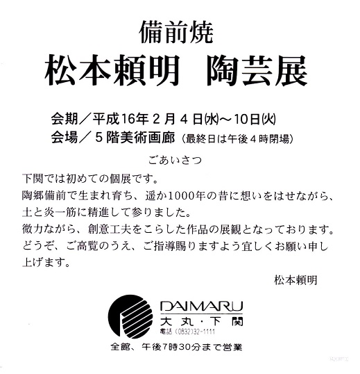 催事名 : 備前焼 松本頼明 陶芸展