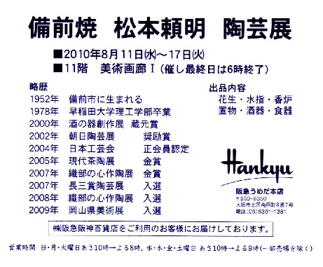 催事名 : 備前焼 松本頼明 陶芸展