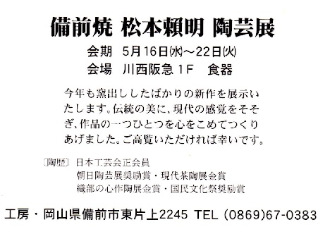 催事名 : 備前焼 松本頼明 陶芸展